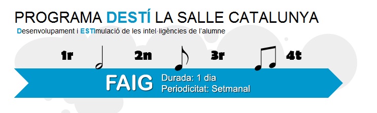 Faig forma part d'un conjunt de programes DESTI (Desenvolupament i ESTimulació de les Intel·ligències de l'alumne) de La Salle Catalunya. Aquests programes es treballen en els Centres de La Salle de Catalunya es d'Educació Infantil, fins a l'ESO.